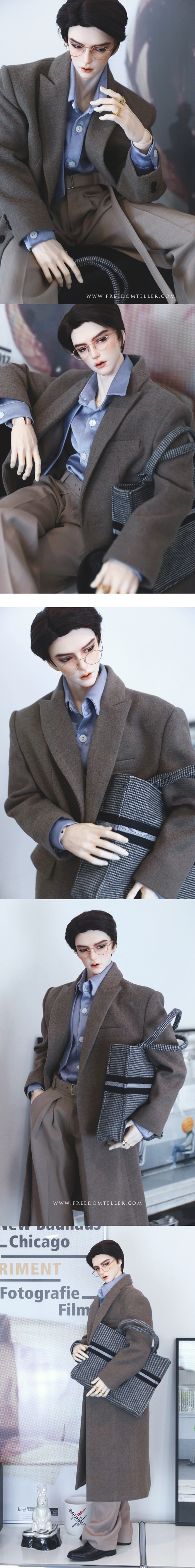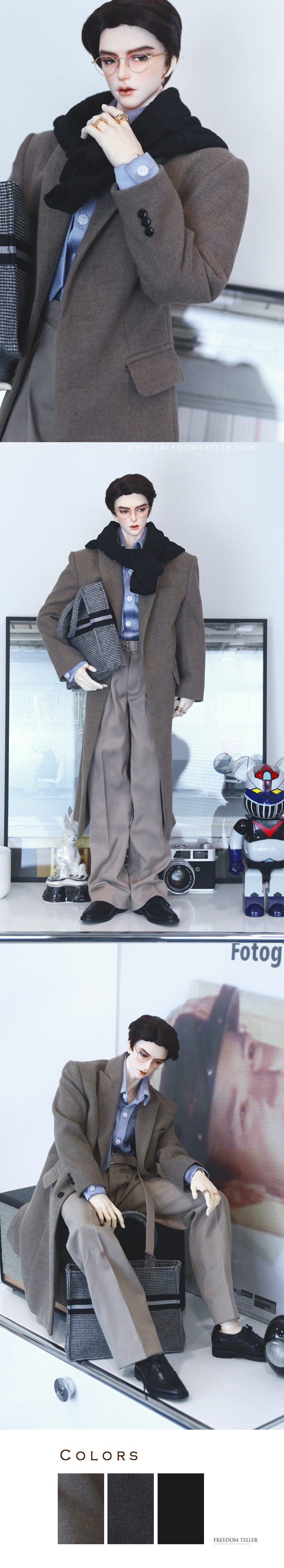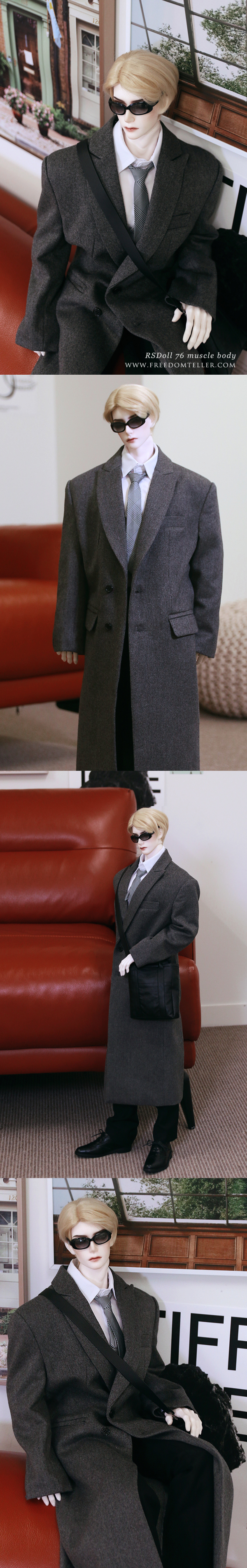 It is a simple silhouette with semi-double closure. It's crafted with an emphasis on sophisticated fit and tailoring. You could match shirts or knit wear together. Even wear it over a suit, it could create a nice style for your doll.