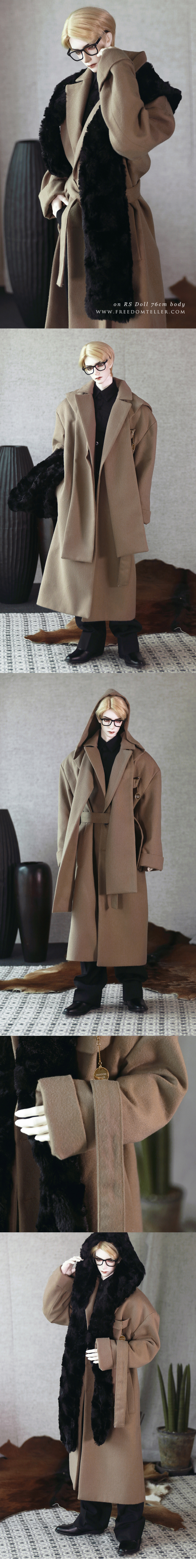 We made this coat very relaxed in order to cover different body sizes. Also, we used soft & fine wool to make relaxed fit. We added self-fabric belt & hood muffler to complete the style. We have 2 sizes - 70cm, 75-78cm. Please select the size from options. * We have 2 different fabric hood mufflers. Self-fabric muffler is a set item with coat, and fur muffler is optional. Please note!